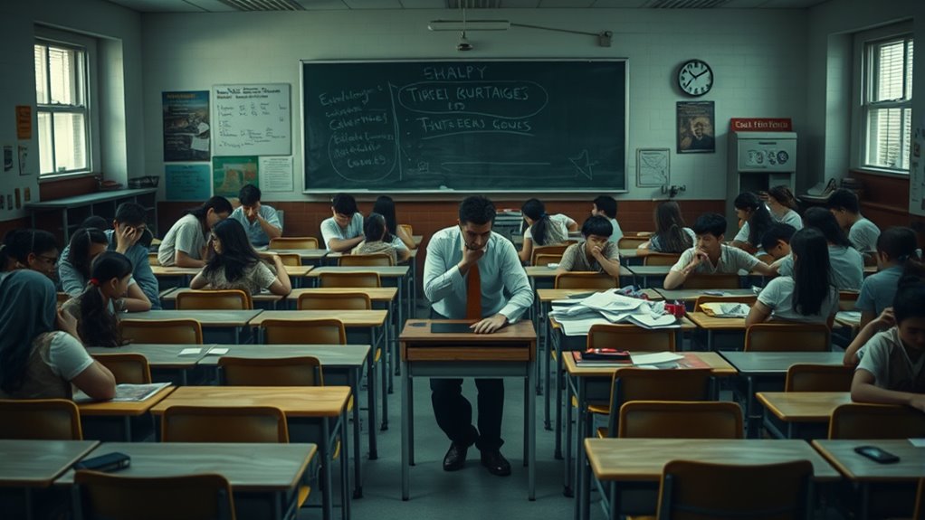 Ever wonder how teacher shortages affect your child’s future? When classes are understaffed, students often experience decreased engagement and disrupted learning routines. This leads to lower learning retention, making it harder for them to build foundational skills. Over time, these gaps can hinder academic progress, limiting opportunities and confidence. You might ask, how can we guarantee consistent quality education despite staffing challenges? Addressing shortages is vital for long-term student success.