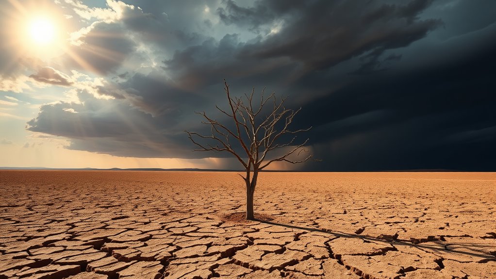 Extreme weather can cause long-term health hurdles, harming your heart, lungs, and mental health. You might struggle with anxiety or depression from constant climate crises, while poor air quality worsens respiratory issues. Over time, these issues can lead to chronic conditions, creating a cycle of suffering. Staying informed, supporting climate action, and protecting mental and physical health become essential to weather the relentless ripple effects of extreme weather.