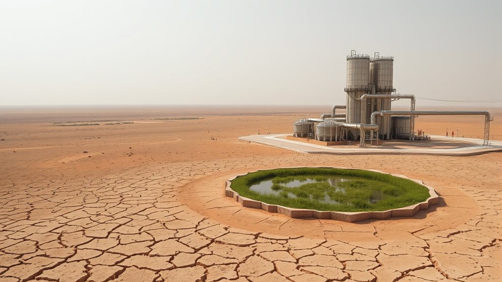 Like a ripple in the ocean, large-scale desalination plants impact marine ecosystems, disrupting delicate habitats and threatening marine life. They also consume significant energy, leaving a carbon footprint that worsens climate change. These environmental costs ripple through ecosystems, affecting biodiversity and water quality. When you support or advocate for desalination, remember these impacts, and push for cleaner, more sustainable solutions that minimize harm to our planet’s essential marine resources.