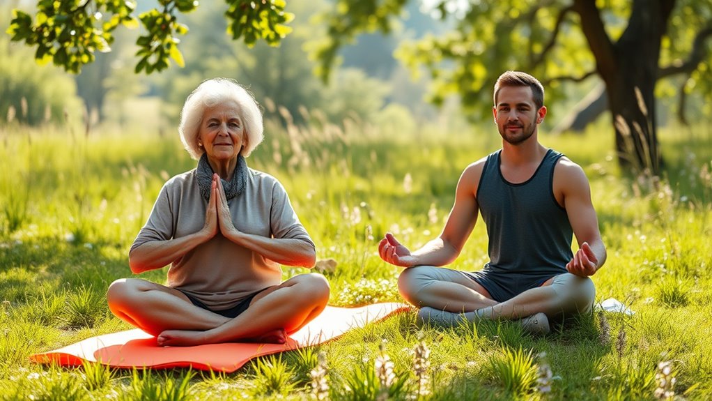 Combining fitness routines with mindfulness practices can substantially boost your mental resilience and support a longer, healthier life. Regular physical activity improves blood flow and releases mood-boosting endorphins, while mindfulness enhances emotional regulation and reduces stress. Integrating both helps you bounce back from setbacks and keeps your mind sharp. By practicing this balance consistently, you’re setting yourself up for sustained vitality—stick around to discover ways to make this approach part of your life.