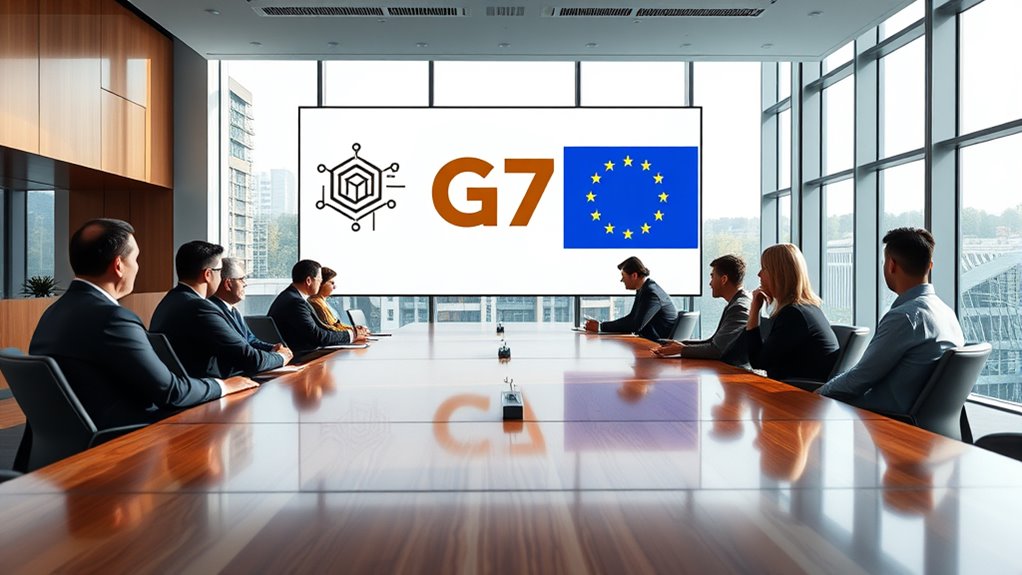 Have you ever wondered who should oversee the rapidly advancing field of artificial intelligence? As AI technology accelerates, establishing effective regulation becomes critical to guarantee it benefits society while minimizing risks. This responsibility isn’t solely on one country’s shoulders; it requires international cooperation rooted in shared values like AI ethics. When nations collaborate, they create a unified framework that guides AI development responsibly and fairly. International cooperation helps prevent a fragmented approach where some countries might prioritize innovation over safety, leading to gaps in oversight that could be exploited or cause harm. By working together, governments, organizations, and experts can develop common standards, share best practices, and enforce regulations that uphold human rights, privacy, and safety across borders. The G7 principles exemplify this global effort. They emphasize the importance of transparency, accountability, and ethical considerations in AI deployment. These principles serve as a foundation for member countries to align their policies and encourage responsible AI innovation worldwide. The G7 recognizes that AI ethics — including fairness, inclusivity, and respect for human dignity — should guide regulation, not just technological feasibility. Such an approach underscores the importance of international cooperation in setting norms and standards that transcend national interests, ensuring AI development adheres to universally accepted ethical principles. Meanwhile, the European Union’s AI Act advances these ideas by establishing exhaustive legal frameworks designed to regulate AI systems within its jurisdiction. It classifies AI applications based on risk levels, imposing strict requirements on high-risk systems to safeguard fundamental rights. The EU’s approach highlights the need for proactive regulation that prevents potential harms before they occur, emphasizing transparency, traceability, and human oversight. These regulations aim to foster innovation while protecting citizens from misuse or unintended consequences. As AI continues to evolve, it’s clear that a patchwork of national rules won’t suffice. Instead, ongoing international dialogue and cooperation are essential to develop harmonized standards, ensuring AI’s benefits are shared globally and its risks contained. Whether through multilateral agreements, treaties, or collaborative initiatives, nations must work together to shape a future where AI serves humanity’s best interests. Ultimately, overseeing AI’s growth isn’t just about technological regulation, but also about embedding ethics into every phase of development. International cooperation acts as the backbone of this effort, fostering trust and shared responsibility as the world navigates the complexities of AI innovation. A crucial aspect of this is promoting Cultural Intelligence among policymakers and developers to ensure culturally sensitive and ethically sound AI systems. By aligning efforts through global standards and ethical principles, we can ensure AI remains a force for good, respecting human rights and promoting sustainable progress worldwide.