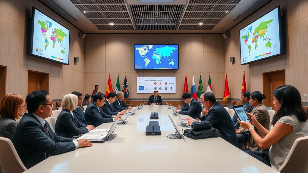 Recent updates show significant progress in global biodiversity negotiations centered on the Montreal-Kunming framework. Countries are making stronger commitments to protect ecosystems, respect indigenous rights, and establish marine conservation areas. Efforts focus on creating effective strategies beyond protected zones, tackling issues like climate change and overfishing. This movement reflects a shared understanding of biodiversity’s social and economic importance. Keep exploring to discover how these advances are shaping the future of Earth’s life-support systems.