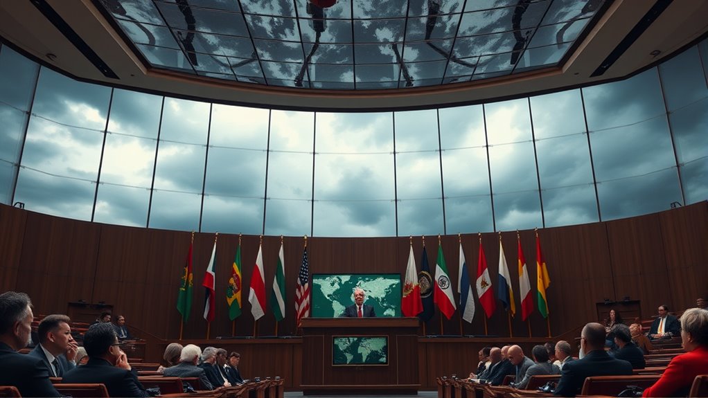 In 2025, international courts are increasingly holding nations accountable for climate inaction, and you’ll see lawsuits demanding they meet their climate commitments. Countries face pressure for policies favoring fossil fuels, and courts are demanding transparency and stronger action. These legal battles are reshaping how governments respond to climate change, emphasizing responsibility over policy. If you want to understand how legal responsibility is shaping global climate efforts, the details will surprise you.