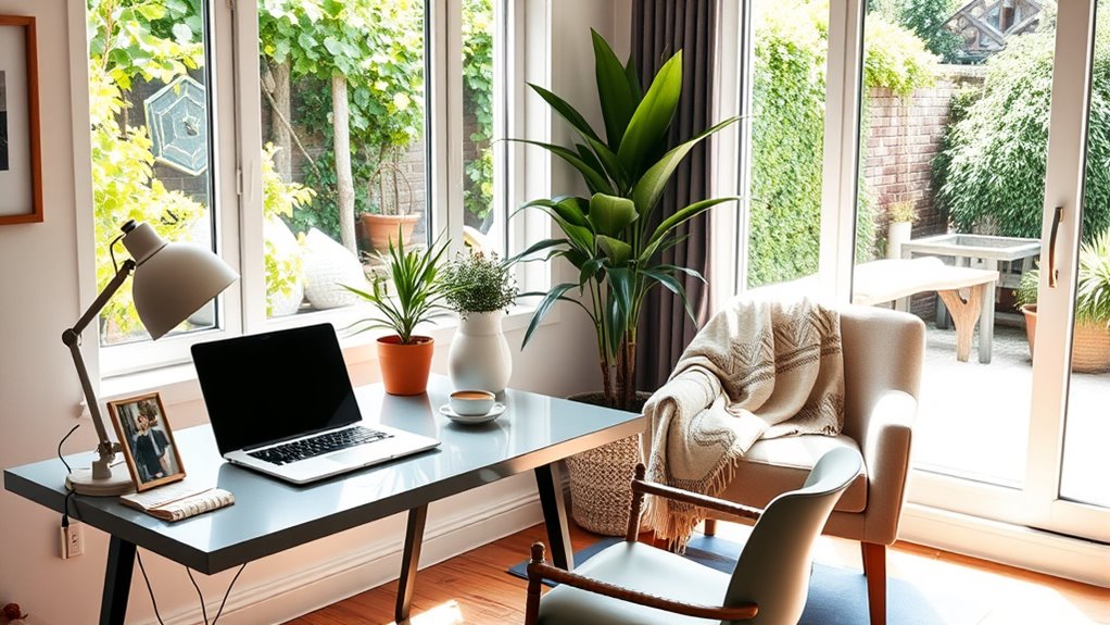 Maintaining effective remote collaboration also involves leveraging technology wisely. Use tools that streamline communication without overwhelming you. For instance, designate specific channels for urgent matters and avoid constant notifications outside work hours. This helps you stay engaged during work but disconnect when needed. Consistent routines—such as starting and ending your day at set times—reinforce boundaries and foster a sense of normalcy, which benefits both your mental health and productivity. Remember that your physical environment plays a role too. Create a dedicated workspace that signals when you’re working and when you’re off-duty, helping your brain switch modes and reduce stress. Additionally, understanding signs of spoilage in food can serve as a metaphor for recognizing when your mental health is deteriorating, prompting necessary adjustments.