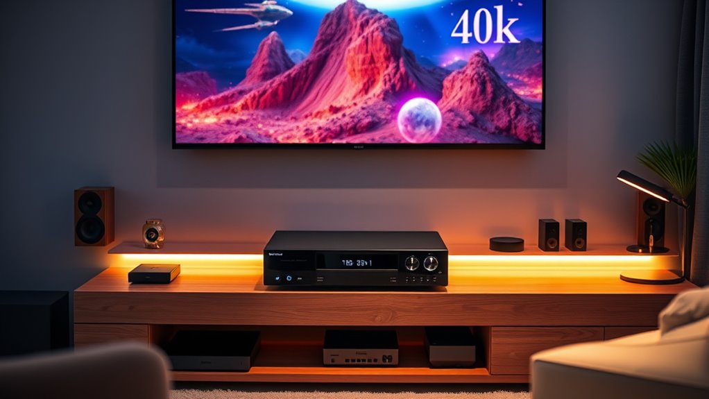 Are you ensuring your 4K Blu-ray player delivers the stunning picture quality you expect? The first step is confirming it supports 4K Ultra HD resolution (3840 x 2160 pixels), which guarantees sharp detail and clarity. Compatibility with HDR formats like HDR10, Dolby Vision, and HLG is essential for vibrant colors and better contrast. Additionally, check if the player offers 4K upscaling for standard HD or Full HD content, helping you enjoy older movies in near-4K quality. Advanced video processing technologies, such as high-precision chroma and tone mapping, further improve color accuracy and dynamic range. Ultimately, a maximum supported frame rate of 60p ensures smooth playback for fast-moving scenes, giving you a cinematic experience with every viewing.