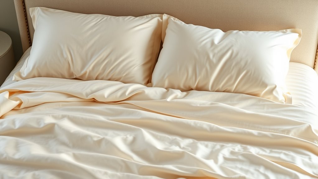 You’ve got to find the sweet spot in thread count for comfort, and I swear, it’s not as complicated as it seems. Generally, a thread count between 200 and 400 strikes the perfect balance—too low feels rough, too high can trap heat like a sauna. I recommend feeling different sheets and trusting your comfort instinct, because the best sheets should feel like a gentle, cozy hug every night.