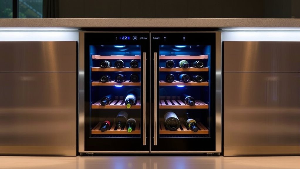 Imagine your wine collection nestled perfectly in a sleek, dual-zone cooler, each bottle resting at just the right temperature. With these top picks, you’ll create a stylish oasis for your wines, whether you prefer crisp whites or bold reds. So, choose the one that feels like a custom-built vault for your favorites. Elevate your wine experience and enjoy every sip, knowing your bottles are perfectly chilled and ready to serve whenever you want.