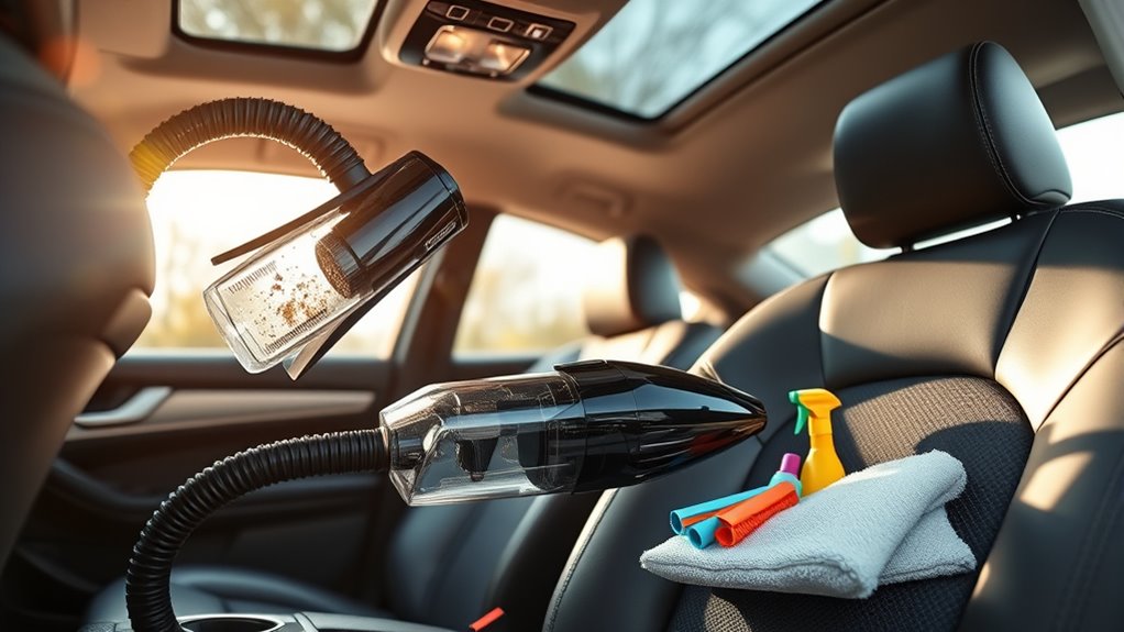 Choosing the right car vacuum is like finding the perfect key to open a spotless vehicle—each one offers unique strengths. Whether you prefer cordless convenience, powerful suction, or versatile nozzles, there’s a cleaner for you. Remember, a clean car isn’t just about aesthetics; it’s about creating a space where every drive feels fresh and inviting. So, which one will you choose to turn your car into a sanctuary of cleanliness? The answer awaits.