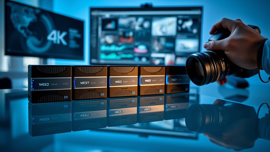 Choosing the right enterprise-grade external SSD can boost your creativity and guarantee reliable performance. Did you know that creators who upgrade to high-quality SSDs experience up to 50% faster workflow speeds? Investing in these top options means you’ll get unmatched speed, durability, and peace of mind. Don’t settle for less—your projects deserve the best. With the right drive, you’ll stay ahead and bring your ideas to life seamlessly.