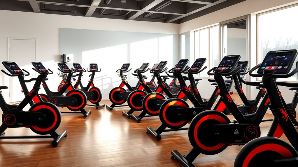 Did you know that over 80% of exercise injuries occur from falls or improper use? I always prioritize safety by choosing bikes with built-in features like sturdy handrails, emergency stop buttons, and non-slip pedals. These features help prevent accidents and injuries during workouts. I also recommend wearing proper footwear and staying attentive. Safety is key to enjoying your workouts and making consistent progress without risking harm.