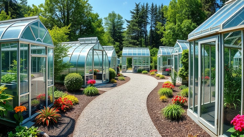 I love customizing my greenhouse like a tailor-made suit—perfectly snug and just right for my space. Most polycarbonate greenhouse kits are designed with flexibility, allowing you to adjust dimensions or add extensions. I’ve found that many brands offer modular components, so you can build a cozy corner or a sprawling garden oasis. It’s like planting your dream greenhouse, size and all, exactly how you envision it.