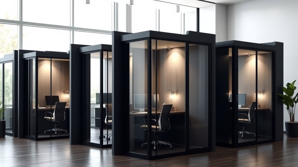 Choosing the right privacy booth is like finding the perfect oasis amid a bustling desert—each one offers a peaceful refuge for focus and productivity. With so many options, you can tailor your workspace to fit your needs perfectly. Whether it’s a sleek acoustic panel or a portable soundproof booth, these choices help carve out your sanctuary. Invest in the right privacy solution, and watch your home office transform into a sanctuary of concentration and calm.