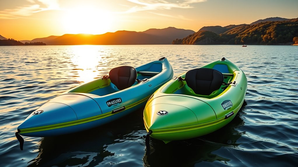 Choosing the right inflatable tandem kayak involves more than just size and stability—it’s essential to prioritize seating comfort and adjustability. Comfortable, padded seats with ergonomic design support longer paddling sessions without fatigue, while multiple position options let you customize your sitting height and angle for better balance and visibility. Padded EVA or foam seats add cushioning, making rough or extended trips more enjoyable. The ability to remove or fold seats provides versatility, allowing quick configuration changes for solo or tandem use. Adjustable straps and backrests help maintain proper posture, reducing lower back strain. Overall, a well-designed seating system enhances comfort, boosts confidence on the water, and ensures a more enjoyable paddling experience, no matter the adventure length.