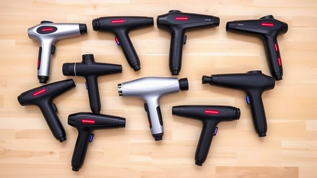 I believe massage guns truly aid muscle recovery, but their effectiveness depends on choosing the right one for your needs. While some swear by deep tissue relief, others find heat and cold therapy more beneficial. It’s fascinating how technology can accelerate healing, but don’t forget—consistent use and proper technique matter most. So, take your time, pick wisely, and listen to your body. Your muscles will thank you for it.