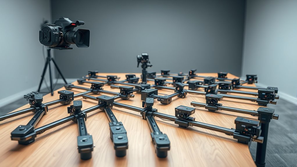 If you’re looking for the best motorized camera sliders for smooth shots in 2025, I’ve checked out the top options like the GVM Carbon Fiber, Accsoon Toprig, and Neewer DL400. These models offer versatile modes, solid build quality, and easy control—perfect for both professional videographers and hobbyists. They support multiple devices and come with features like app control and portability. Stay with me, and I’ll give you all the details to find the perfect slider for your needs.