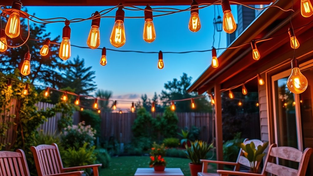 Outdoor string lights typically last about 2 to 5 years, depending on durability and design. I’ve found that quality lights with weather-resistant features tend to shine longer, even through storms and sun. Regularly checking for corrosion or damage helps prolong their lifespan. So, if you invest in sturdy, well-made lights, you’ll enjoy their glow for many seasons, brightening your yard with beautiful, reliable illumination all year long.