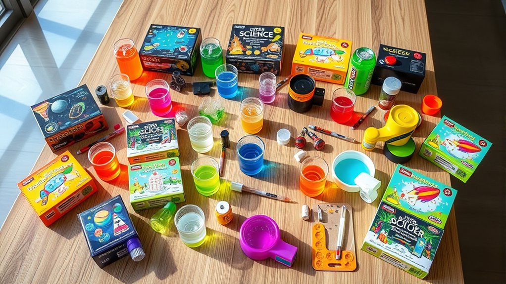 We’ve reviewed the top 15 science kits for kids that combine exciting experiments, hands-on learning, and safety. These kits cover a range of topics like chemistry, physics, robotics, and crystals, offering over 80 to 150 experiments to keep kids engaged and curious. They include easy-to-follow instructions, durable materials, and age-appropriate activities. Keep exploring to find out how these kits can inspire their love of science and learning!