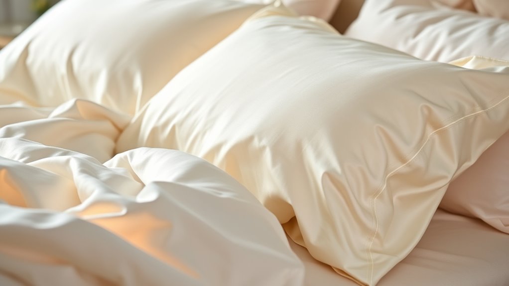 Silk pillowcases are naturally breathable, allowing air to circulate and helping to keep your skin and hair cool throughout the night. This airflow reduces heat buildup, creating a more comfortable sleep environment, especially during hot nights. The natural moisture-wicking properties of silk help regulate body temperature, preventing overheating and excessive sweating. When silk fibers are properly woven, they enhance airflow, ensuring your skin stays dry and comfortable as you sleep. Breathable silk pillowcases also minimize skin irritation and promote healthier skin and hair by reducing moisture retention and friction. Plus, their lightweight, smooth texture makes them suitable for all-season use, keeping you cool in summer and cozy in winter. Overall, breathability and cooling are key factors for a comfortable, skin-friendly sleep.