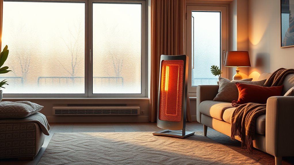 You’ll be glad to hear that these heaters are like caring companions—they come equipped with safety features like tip-over and overheat protection. I always look for these when choosing a heater, because peace of mind matters. These safety measures act quietly in the background, letting me enjoy the warmth without worry. It’s reassuring to know that precautions are built in, making your comfort truly worry-free.