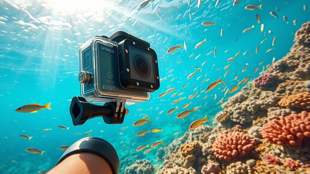 Underwater cameras designed for extreme depths perform surprisingly well, thanks to their specialized housings and robust construction. I’ve used some that withstand pressures beyond recreational diving limits, capturing stunning footage even at great depths. However, I always guarantee the equipment is rated for those depths and properly sealed. With the right gear, I’ve found that underwater cameras can reliably record incredible moments deep below the surface, no matter how extreme the environment.