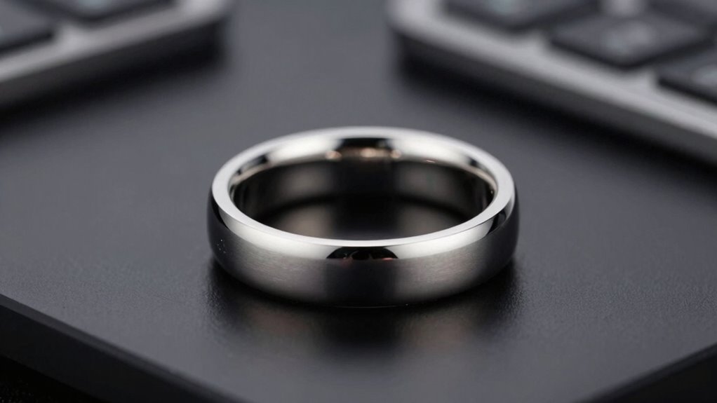 A simple sizing mistake can substantially impact the accuracy of your smart ring, making it less reliable for tracking health metrics or opening devices. When you choose a ring that doesn’t fit snugly or comfortably, it can lead to inconsistent readings and frustration. The fit matters because a smart ring relies on precise contact with your skin to gather data like heart rate, oxygen levels, and activity tracking. If the ring is too loose, it shifts around, disrupting the sensors’ contact. Conversely, if it’s too tight, it can restrict blood flow and cause discomfort, which might also interfere with proper sensor function. That’s why paying close attention to sizing is vital. Ensuring the fit quality of your smart ring can significantly influence its performance and longevity. Also, selecting a durable material that withstands daily wear and tear helps maintain consistent contact and sensor accuracy over time. The materials your smart ring is made from greatly influence both its durability and user comfort considerations. Common smart ring materials include metals like titanium or stainless steel, as well as high-quality plastics and ceramics. Titanium, for example, is lightweight, hypoallergenic, and resistant to corrosion—making it a popular choice for long-term wear. However, if the material isn’t smooth or is rough on the inner surface, it could cause irritation, especially if the ring is too tight. Some materials might also feel colder or heavier, affecting comfort during extended wear. Choosing a material that balances durability with comfort ensures you’re more likely to wear the ring consistently and correctly. Additionally, considering biocompatibility can help you select materials that are less likely to cause allergic reactions or skin irritation. Proper sizing and material choice not only improve sensor contact but also promote user confidence in daily use. User comfort considerations go beyond just the material. You need a ring that fits well without pinching or feeling loose. When sizing, measure your finger at different times of the day, as swelling can change finger size. Many smart rings come with adjustable sizes or multiple sizes to choose from, so take advantage of that. Proper sizing guarantees the sensors maintain consistent contact with your skin, which is essential for accurate data collection. An ill-fitting ring can lead to false readings or missed data altogether, defeating the purpose of having a smart device. Comfort also encourages regular use, which is key to getting meaningful insights from your health tracker. Additionally, understanding biodiversity and sustainable practices can help you choose eco-friendly materials for your smart device, promoting conservation efforts.