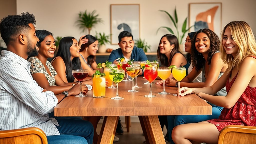 Embracing the sober-curious movement lets you enjoy social events fully without alcohol. You can explore tasty mocktail recipes that impress friends and boost your confidence in social settings. By focusing on your company and engaging activities, you create meaningful connections and memorable experiences. Choosing alcohol-free options simply enhances your enjoyment and sense of control. Keep exploring, and you’ll discover even more ways to make your gatherings vibrant, fun, and alcohol-free.